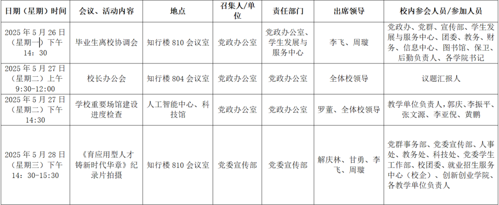 2025年春季学期第十五周全校性会议活动安排表