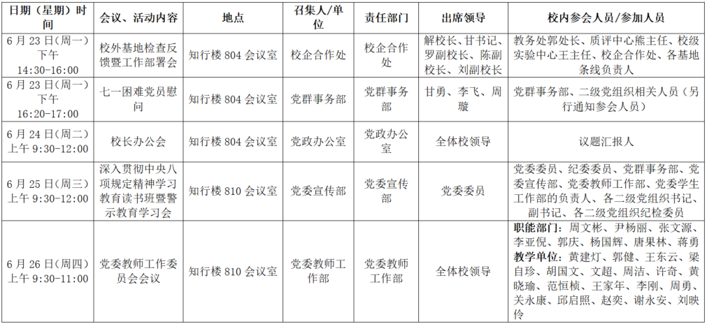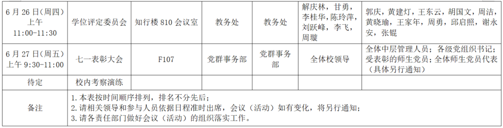 2025年春季学期第十九周全校性会议活动安排表