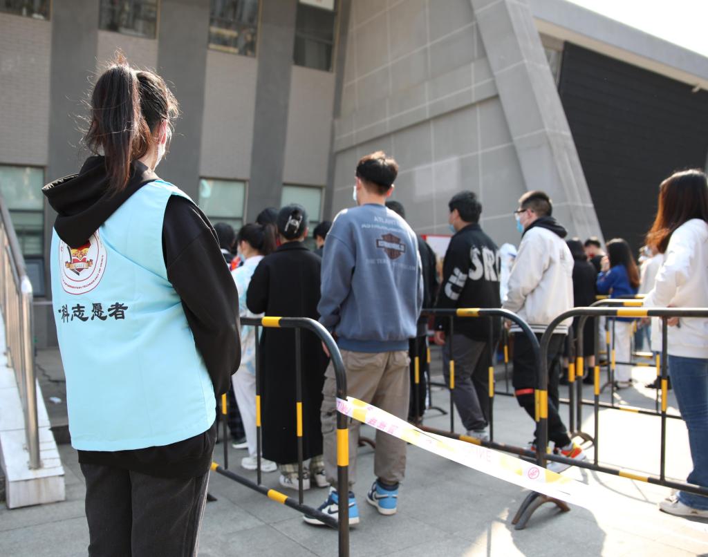 一整个上午,医护人员守护“疫”线,学工系统工作人员、保卫处人员和学生志愿者在现场协助开展信息录入、秩序维护等核酸采样志愿服务工作,全体人员积极配合、秩序井然,整个检测流程从采样到离场,组织科学、保障有力、防护到位。
