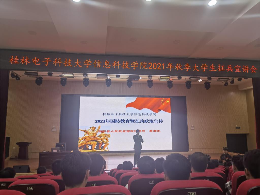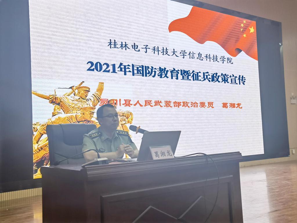 6月9日上午,由桂林市灵川县人武部与我院征兵工作站联合举办的2021年秋季大学生征兵宣讲暨现场咨询会在51206报告厅举行,灵川县人民武装部政治委员葛湘龙到场宣讲,各系相关师生代表参加会议。