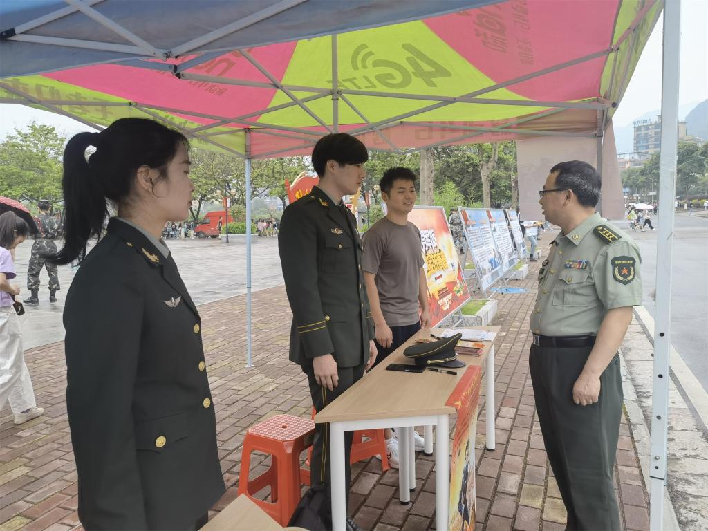 会后,灵川县人民武装部与我院征兵工作站在五号教学楼广场开展了现场咨询宣传活动,为来往学生解答入伍过程中所面临的问题,鼓励广大有志青年携笔从戎,积极响应祖国号召,共圆祖国强军梦。