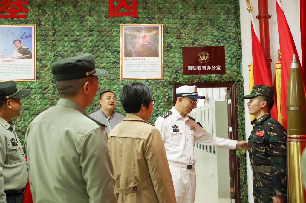张汉川一行参观了学院国防教育基地,与学院退役大学生士兵组织迷彩先锋队队员进行了亲切交谈,对队员们所展示出的退役士兵风采表示肯定并鼓励大家继续发扬部队优良作风,在校园中做好榜样。