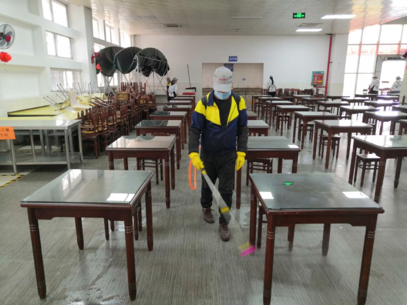 为做好疫情防控工作,有效切断病毒传播途径,自1月27日开始,后勤员工根据物业公司制定的疫情防控工作方案,科学有效得开展了校园环境卫生整治行动,一是对教学楼、行政楼、食堂和办公区域等重点场所进行全面的保洁与消毒,二是对食堂后厨、就餐区、库房、员工宿舍、各类厨具、餐具进行消杀;三是清理全院沙井淤泥、疏通各类下水管道,彻底清理积压在花坛植被中的落叶和垃圾;四是在校园内放置废弃口罩回收垃圾桶14个,每日定时收集处置,彻底清理卫生死角和各类病媒生物孳生地,营造安全、卫生的校园环境。