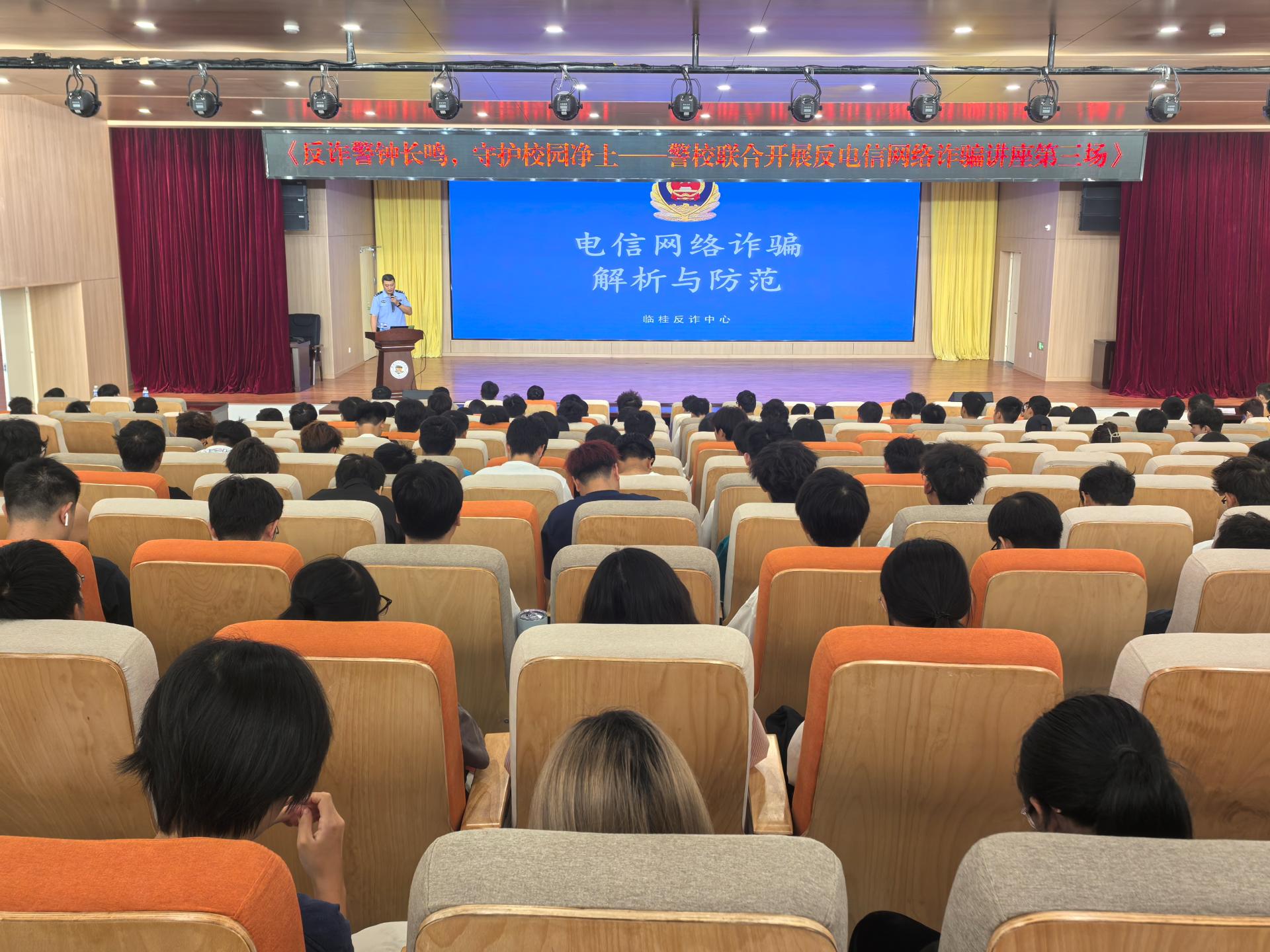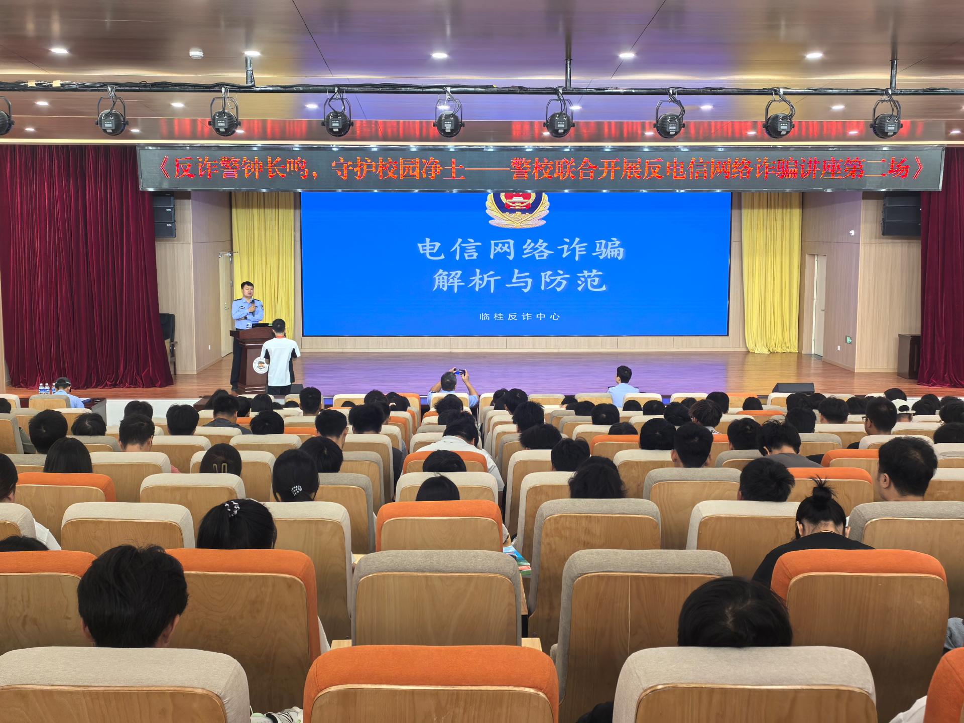 本系列讲座,学校邀请临桂分局反诈中心的资深洪警官主讲。洪警官结合近年来发生在校园内外的真实案例,剖析电信网络诈骗的常见类型,如网络购物诈骗、刷单诈骗、游戏账号充值诈骗、冒充熟人诈骗等,详细讲解诈骗案例的作案手法、特点和防范措施。