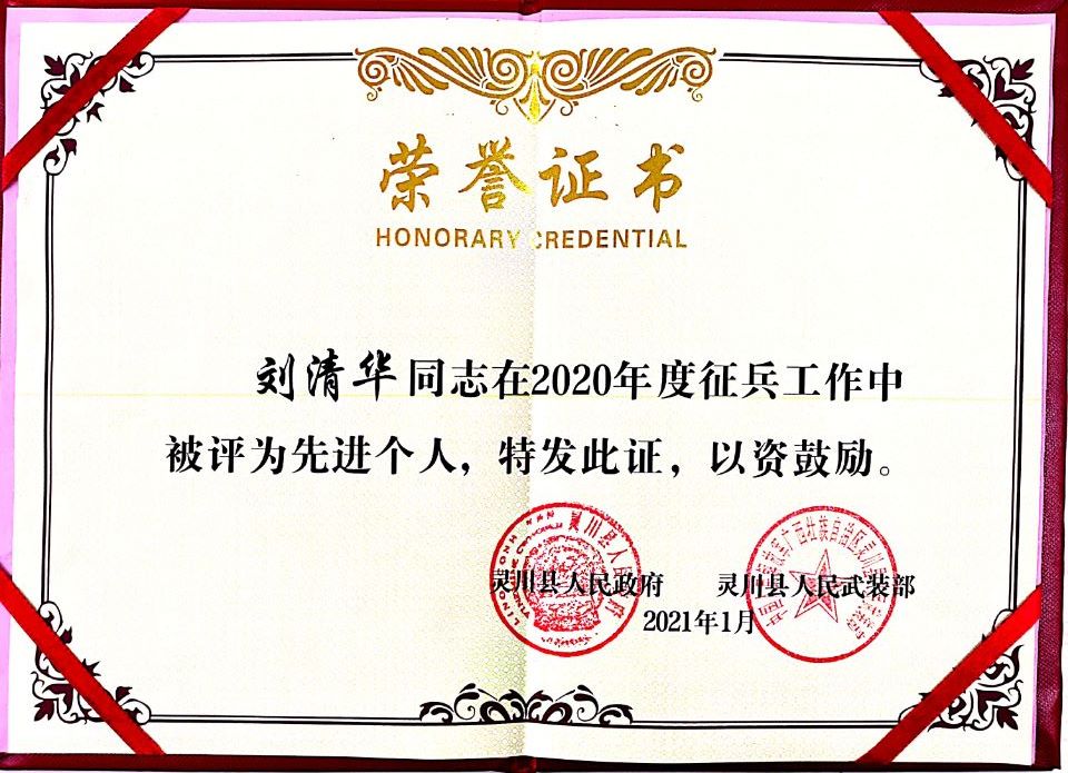 1月27日上午,灵川县人民政府征兵办公室在县行政大楼召开了2021年春季征兵工作会议,会议宣读了灵川县2020年度征兵工作先进集体和个人名单。我院被评为“灵川县2020年度征兵工作先进单位”,刘清华老师被评为“灵川县2020年度征兵工作先进个人”。