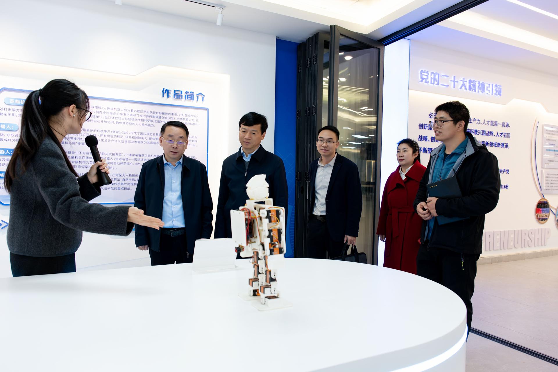 来访嘉宾实地参观了学校的创新实践中心与科技馆。参观过程中,嘉宾们详细了解了中心各功能区域的布局、学生创新创业项目的孵化流程、以及各类科技创新作品的研发与应用情况。学校在硬件设施投入、实践平台搭建以及激发学生主动创新方面所展现的成效,给来宾留下了深刻印象。