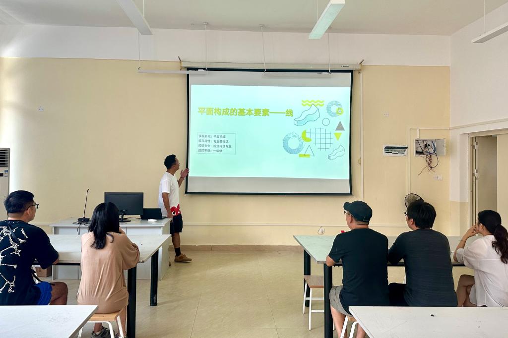 试讲会上,新任教师向学生们介绍了平面构成的基本原理,使用不同类型的线条示例,如直线、曲线、斜线等,向学生们展示了线条在平面构成中的重要性。还通过使用一些实际的例子,如中国移动的logo设计和涂鸦艺术之父Keith Haring的作品,向学生们展示了这些概念在实际创作中的应用。鼓励学生们观察周围的环境,并尝试运用所学的知识来分析和欣赏不同作品中的平面构成。新教师试讲结束后,评委们对其表现给予了高度评价,并给出指导意见。