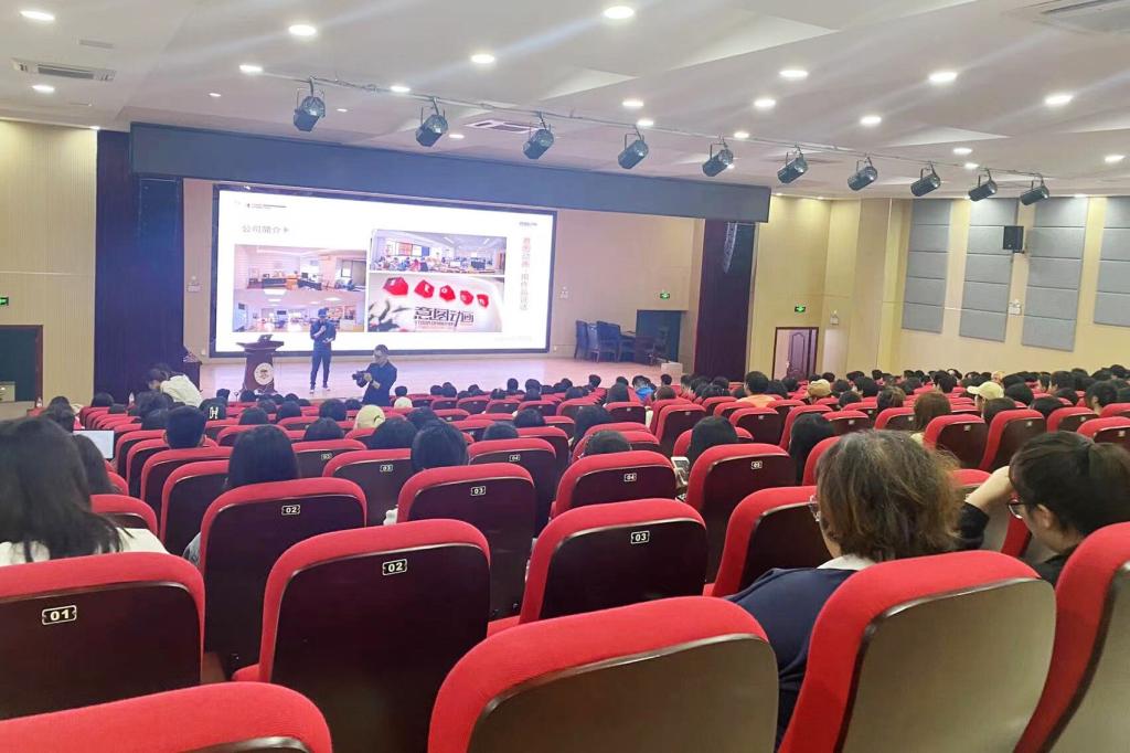 会上,南宁意图动画设计有限公司负责人覃诚总经理首先就公司概况、主营业务、服务客户、岗位需求、企业员工培养模式、公司福利待遇等内容向大家行了介绍。然后,覃总经理详分享了该公司制作的项目案例,旨在生动直观地让同学们了解行业标准。最后,谭凌霄副总经理与现场同学进行了简短的交流,针对同学们对职业发展、晋升道路提出疑问,谭副总经理给予详细的回答并给出建议,并强调了“专业、职业、敬业”在工作中的重要性。