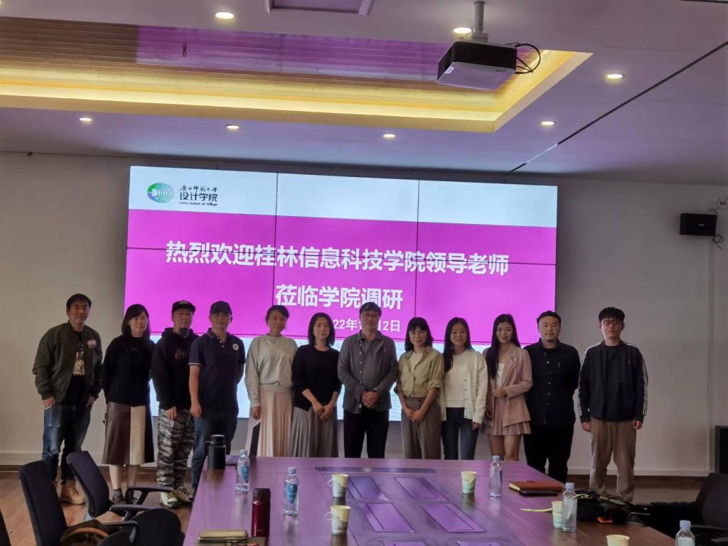为了更好地推进学院学科专业改革和建设,进一步做好课程体系、科研和实验室建设工作,加强学院高质量发展。近期,创意设计学院院长黄晓瑜带队,环境设计教研室主任蒙敏、数字媒体设计教研室主任熊伟、产品设计教研室主任苏锐、视觉传达设计教研室主任李辉、动画教研室主任伍菲及科任教师田婧等一行赴广西师范大学设计学院,围绕“设计学科专业建设”“课程体系改革”“科研工作”三大主题,进行了调研、学习和交流。
