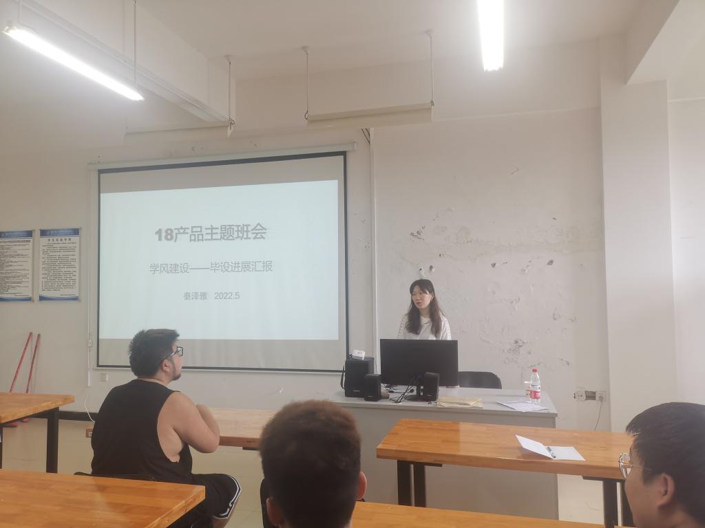 2022年5月27日创意设计学院18级产品设计一班及二班共同召开本学期第二次主题班会,班主任秦泽雅老师主持会议。