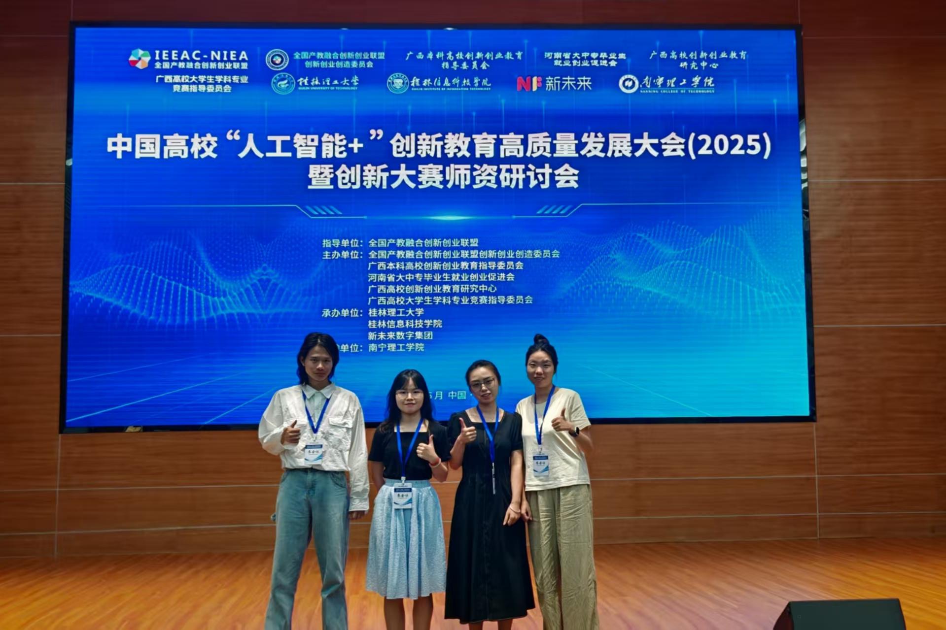 为促进教师专业发展,提升“人工智能+”创新教育水平,beat365中文官方网站创意设计学院组织优秀青年教师丘智科、张柳芝、王程怡、兰静超前往桂林理工大学,参加2025年6月12日至14日举办的中国高校“人工智能+”创新教育高质量发展大会(2025)暨创新大赛师资研讨会。本次会议由全国产教融合创新创业联盟指导,汇聚了众多国内外知名专家学者和教育工作者,共同探讨“人工智能+”时代高校创新教育的新趋势、新模式和新实践。