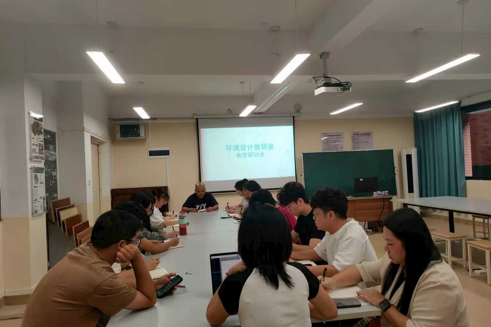 在教学方法研讨环节,教师代表轮流分享教学经验,结合课程案例讲解如何通过“主题情境创设”“小组竞赛式创作”等方式激发学生设计热情,提出对现有教学模式的创新与改良思路。此外,团队还针对“传统教学与数字化手段深度融合”展开热议,探讨将虚拟空间建模、线上联合评图等数字化工具融入课堂的具体路径。