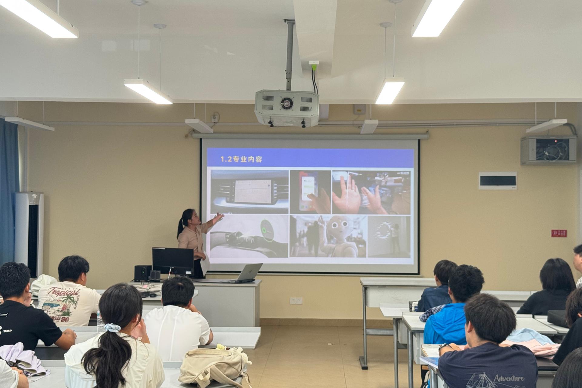 2025年9月17日,创意设计学院智能交互设计教研室在守正楼G210教室开展新生专业见面会。教研室全体教师到现场与学生进行互动交流。