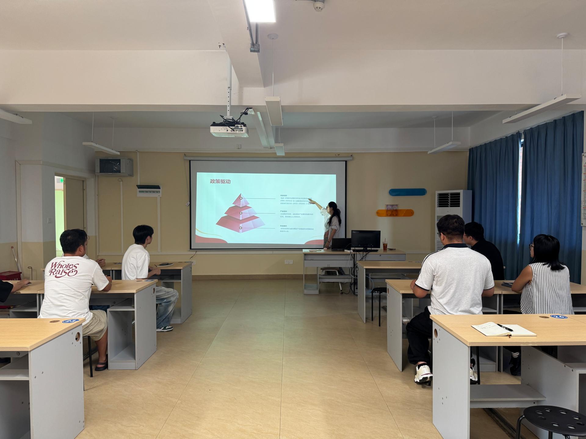 在活动中,教研室主任韩笑老师以“虚实融合,育见未来:深化专业内涵,提升课程质量”为主题,结合《2024级虚拟现实技术专业人才培养方案》实施情况,围绕实施规划,进行专业带头人说“专业”汇报。韩笑老师从国家数字经济战略、产业发展需求和行业需求的角度,系统阐述了开办虚拟现实技术专业的重要意义,清晰勾勒了专业未来建设发展的总体规划,重点介绍了以能力产出为导向“OBE”理念,汇报了当前专业实验实训条件建设成果等内容,并强调专业建设要以培养德智体美劳全面发展、掌握核心技术、具备创新与实践能力的高素质人才为目标,不断优化完善人才培养体系,把办学理念落到实处。