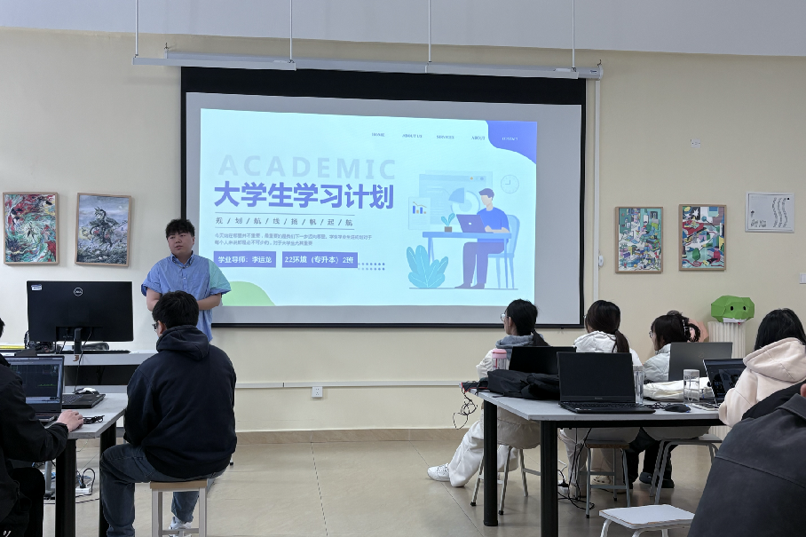 2025年4月9日,在学业导师兼班主任李运龙老师的组织下,2022级环境设计(专升本)2班在德远楼E410教室召开了一场以“助力成长,规划未来”为主题的班会。本次班会旨在帮助学生科学调整下半学期的学习计划,确保学习目标清晰、进度合理。