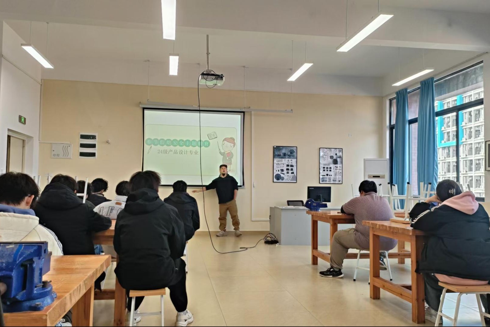 为了增强同学们在假期中的安全意识和自我保护能力,在寒假即将到来之际,2024级产品设计1班于1月3日开展了以“春节假期安全教育”为主题的班会。本次班会由苏锐老师主讲,全班同学共同参与。