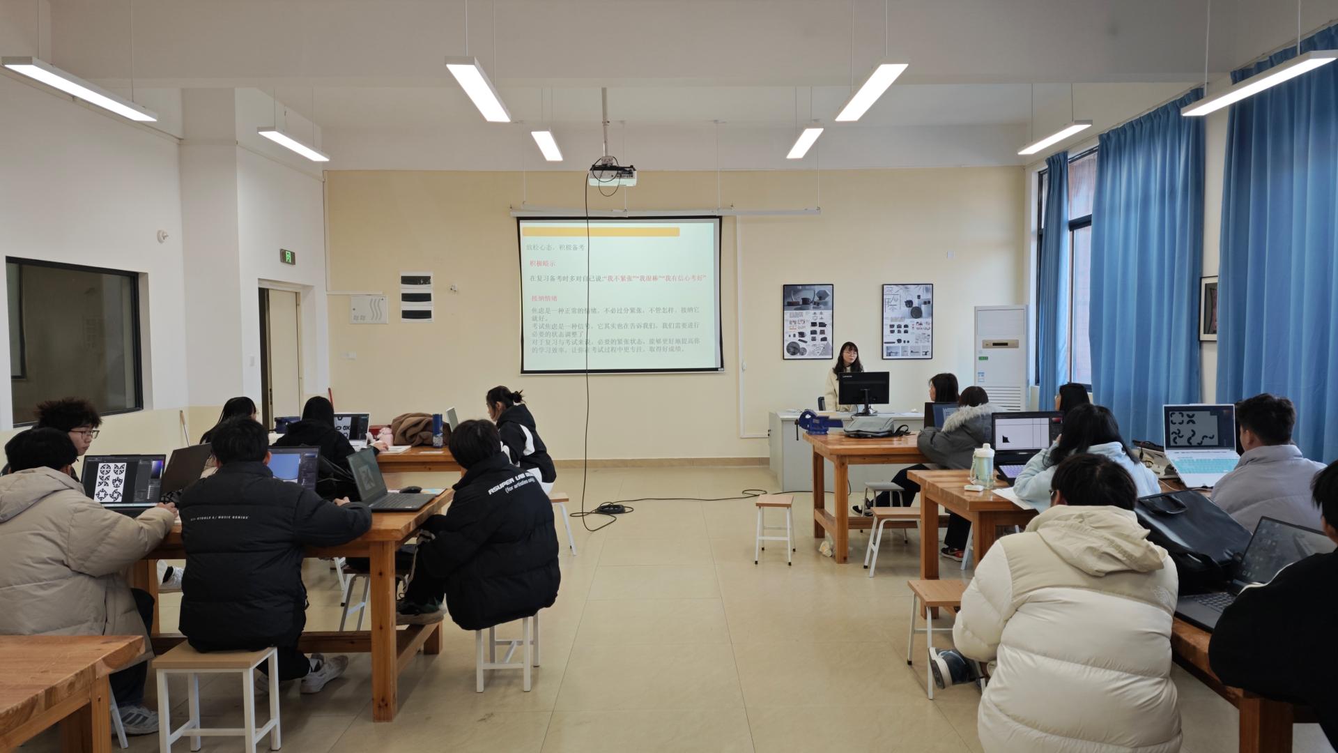 2024年12月16日,创意设计学院产品设计2班在E313教室举行了一场以“期末合理复习指南”为主题的班会,旨在帮助同学们明确复习目标,掌握高效复习方法。本次班会由班主任张柳芝老师主持,吸引了全班同学积极参与。