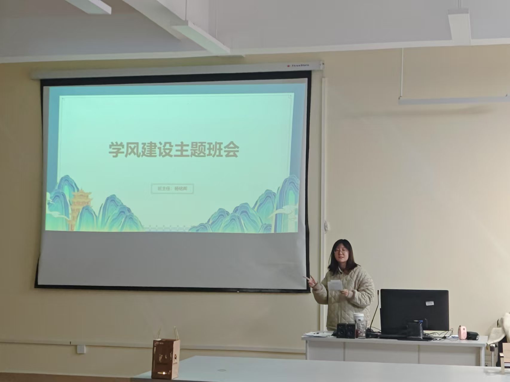 随着本周末大学英语四六级考试的临近以及考试周的到来,12月13日,杨铭晖老师在21级环境设计专升本4班召开了一场以“学风建设,诚信为先”为主题的班会。此次班会旨在提醒同学们注意考试注意事项、诚信考试的重要性,以及在结课周到来时保持良好的学风,杜绝作弊和抄袭行为。