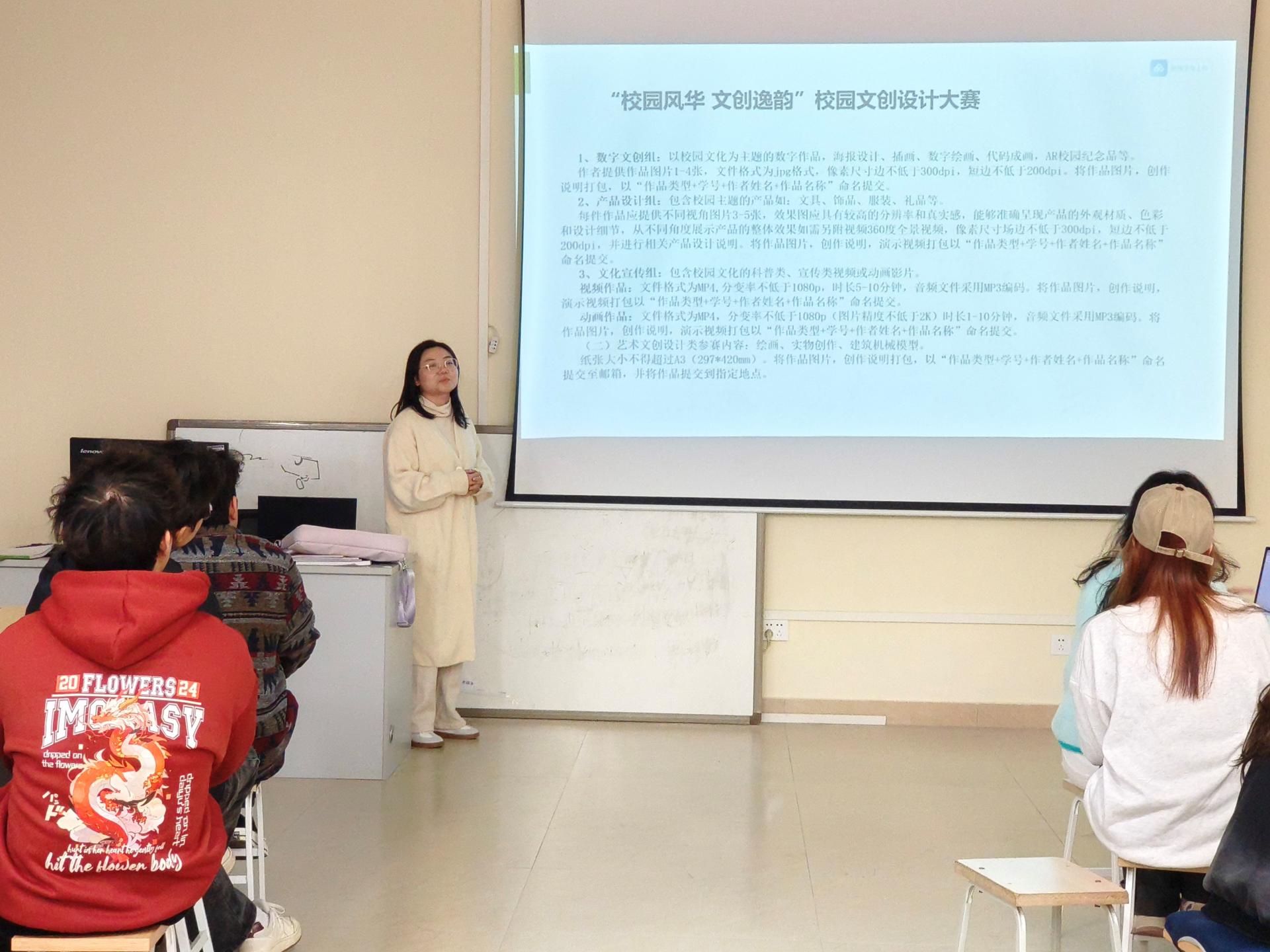 此次“艺术设计类”学科竞赛宣传主题班会的成功举办,不仅激发了同学们的参赛热情,也为他们提供了宝贵的参赛信息和指导。相信在学校的支持和学业导师的引领下,同学们一定能够在未来的艺术设计类学科竞赛中取得优异的成绩,为学校的荣誉和个人的职业发展贡献自己的力量。