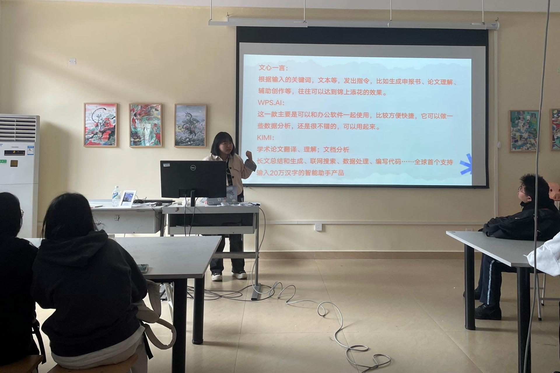 此外,学业导师王欣乐分享了相关的AI工具,例如文心一言、WPS AI、KIMI。在AI的辅助下学生们可以更加高效地处理信息,更加精准地分析数据,从而有更多的时间和精力去专注于创新和创造。