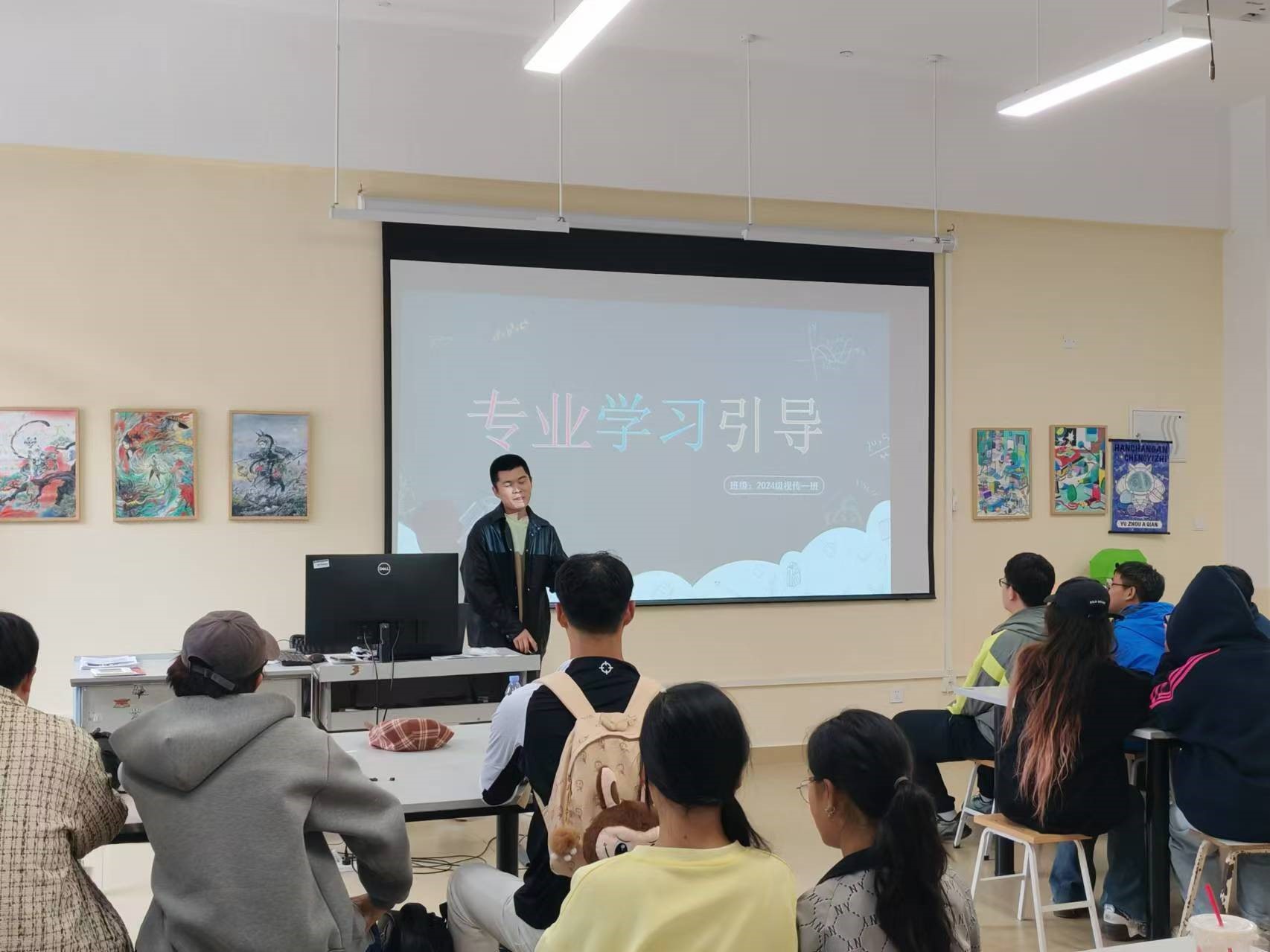 学期近半,为了帮助新生更好地明确自己的专业学习方向,提高对专业的认识与认同,2024级视觉传达设计1班的学生于10月29日组织了一次内容丰富的专业学习引导班会。