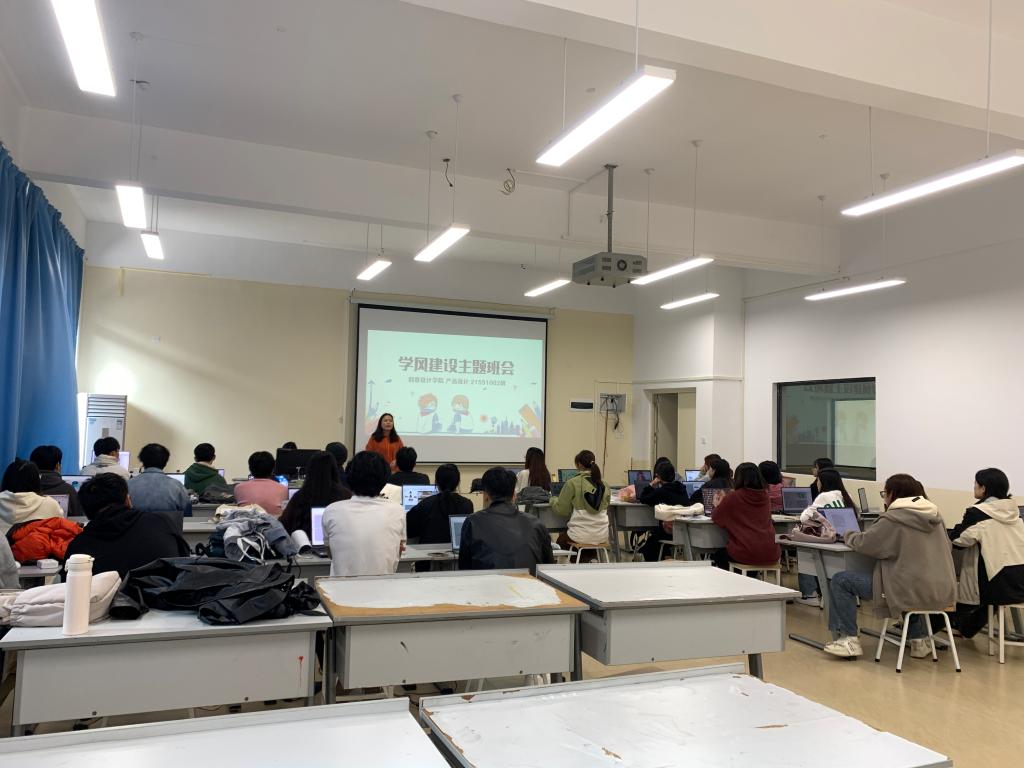 为了提高同学们的自律意识,营造优良的学习氛围,进一步加强班级建设。2023年12月14日,2021级产品设计专业21551001、21551002、21651001班在德远楼专业教室开展“学风建设、诚信考试”主题班会,本次班会由班主任杨宇、王柳凤老师主持召开,2021级产品设计专业全体成员参与。