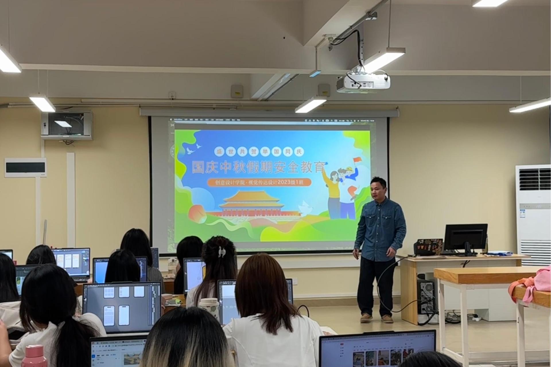 为保障学生度过安全充实的国庆中秋双节假期,2023级视觉传达设计1班与2班召开假期安全教育主题班会。班会由班主任蔡佳航老师主持,两班全体学生参会,重点明确放假安排、强调安全事项并给出学习建议。