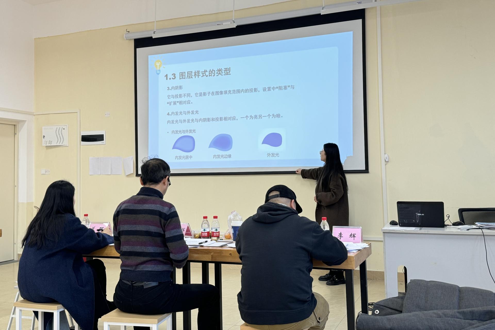 新任教师阳单丹老师带来了《计算机辅助平面设计》“图层效果”,通过清晰的演示和细致的讲解,学生们对图层效果有了更深入的了解和认识。阳老师在教学上展现出的潜力和能力获得了评委们的认可。