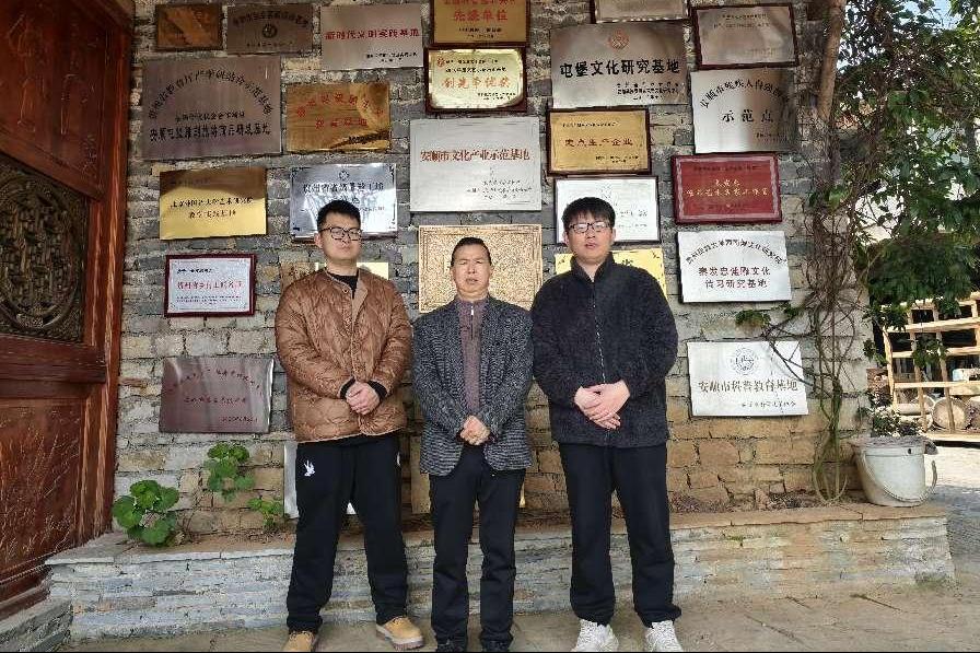 2025年3月22日,创意设计学院院长助理李辉老师、视觉传达设计教研室主任刘古月老师一行赴贵州省安顺市,走访了秦发忠傩雕文化博物馆,深入调研非遗文化传承与创新设计融合发展的实践路径。此次活动旨在推动传统工艺与现代设计教育的有机结合,挖掘非遗文化在当代艺术与产业中的价值潜力。