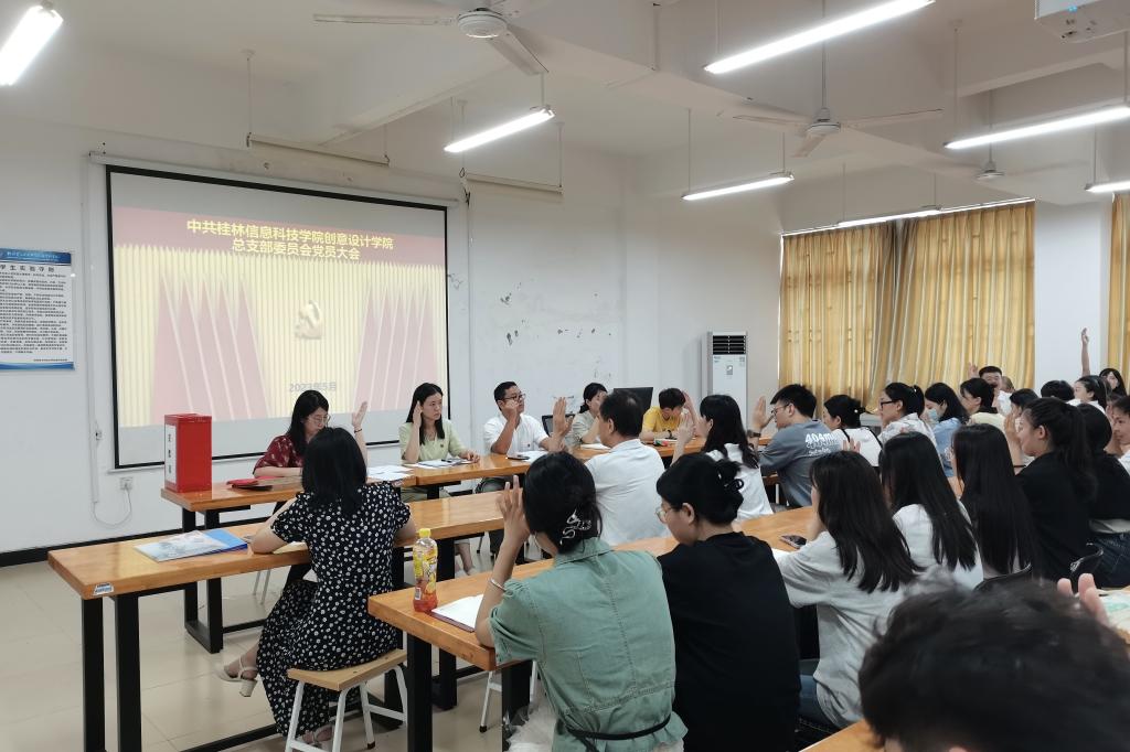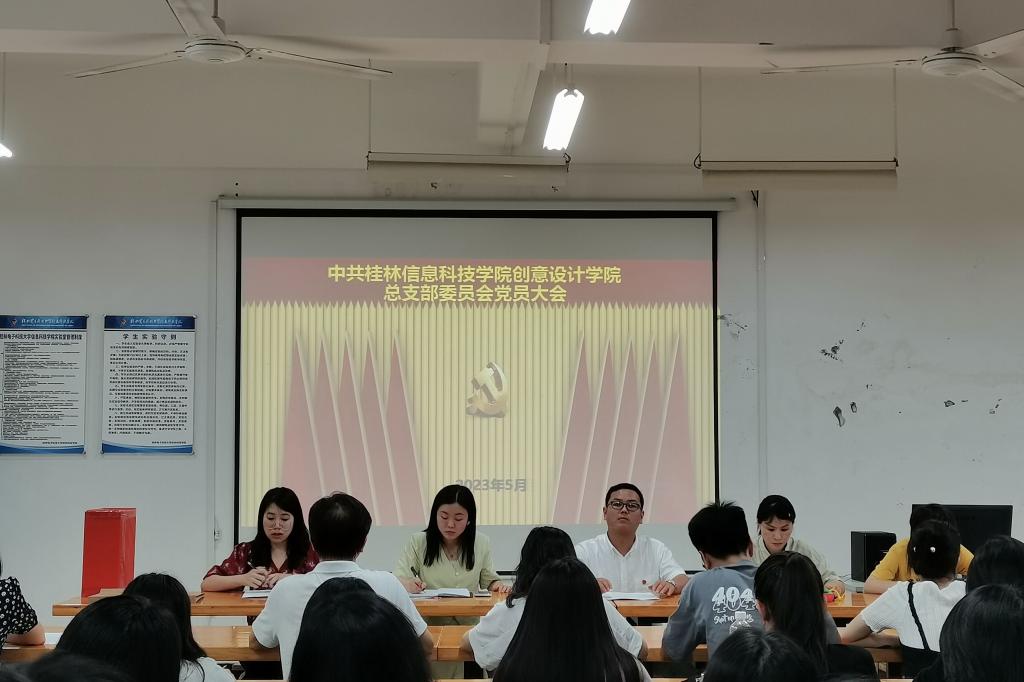 2023年5月26日13:00,创意设计学院党总支在41205教室召开党员大会。创意设计学院党总支书记黄云鹏、学校党群事务部党务主管蒋春妹及创意设计学院全体正式党员参加会议,会议由组织员韦宛彤主持。
