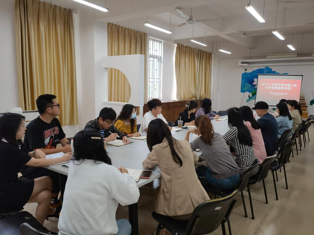 5月6日,创意设计学院教工党支部在42201教室召开学习贯彻习近平总书记考察中国人民大学重要讲话精神会议,以进一步落实立德树人根本任务。全体教工党员参与了本次学习,党支部书记田婧主持学习。
