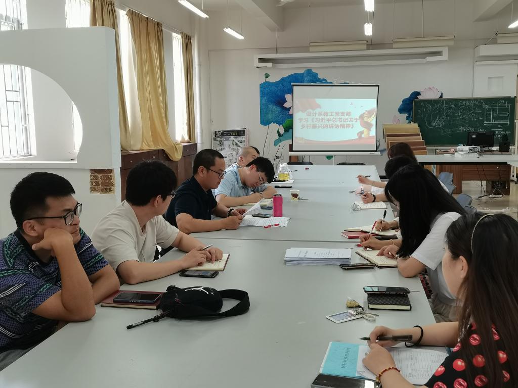 创意设计学院教工党支部近日组织全体教工党员深入学习了“习近平总书记关于乡村振兴的讲话精神”,会议由设计系教工党支部书记田婧主持。