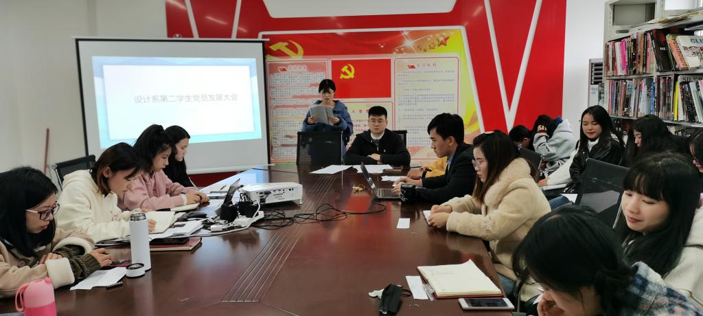 11月23日,设计系第一、第二学生党支部在42406党员活动室召开预备党员接收大会,分别由设计系第一学生党支部书记刘思、第二学生党支部书记张鸿钊主持。