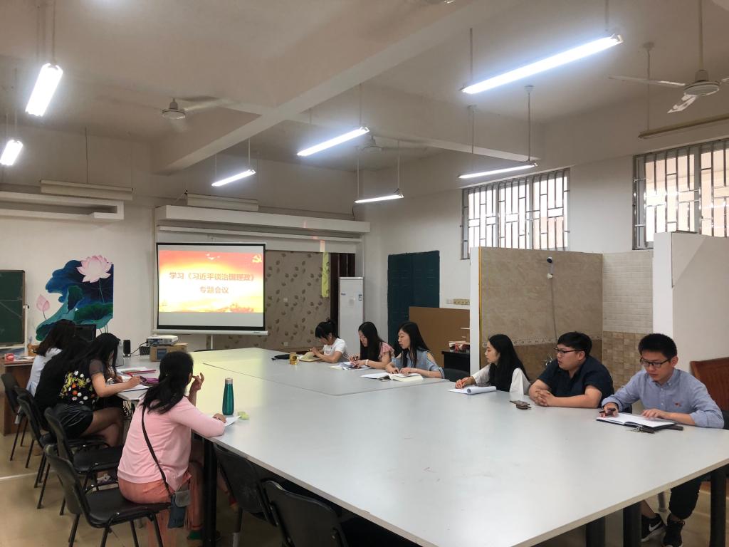 此次会议的主题为学习《习近平谈治国理政》心得汇报交流,教工党员秦泽雅作为此次会议的汇报人,与参会的党员分享了其学习《习近平谈治国理政》第十四章——“推进中国特色大国外交”的一些心得感受。其总结到:习近平总书记推进中国特色外交的这些举措,无疑是对中国历史遭遇进行深思后的认识,具有科学性及重大现实意义。