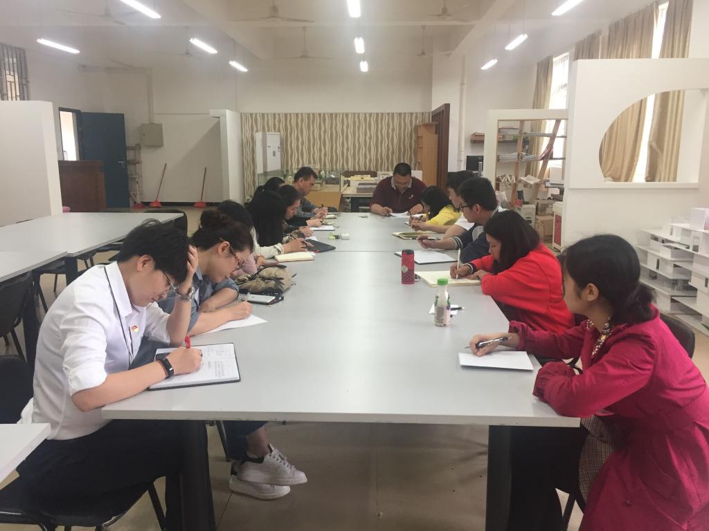 2018年4月11日下午,设计系在42201教室组织全体教工党员召开学习会议,会议由系党总支书记罗光铭主持,党总支全体教工党员参加。