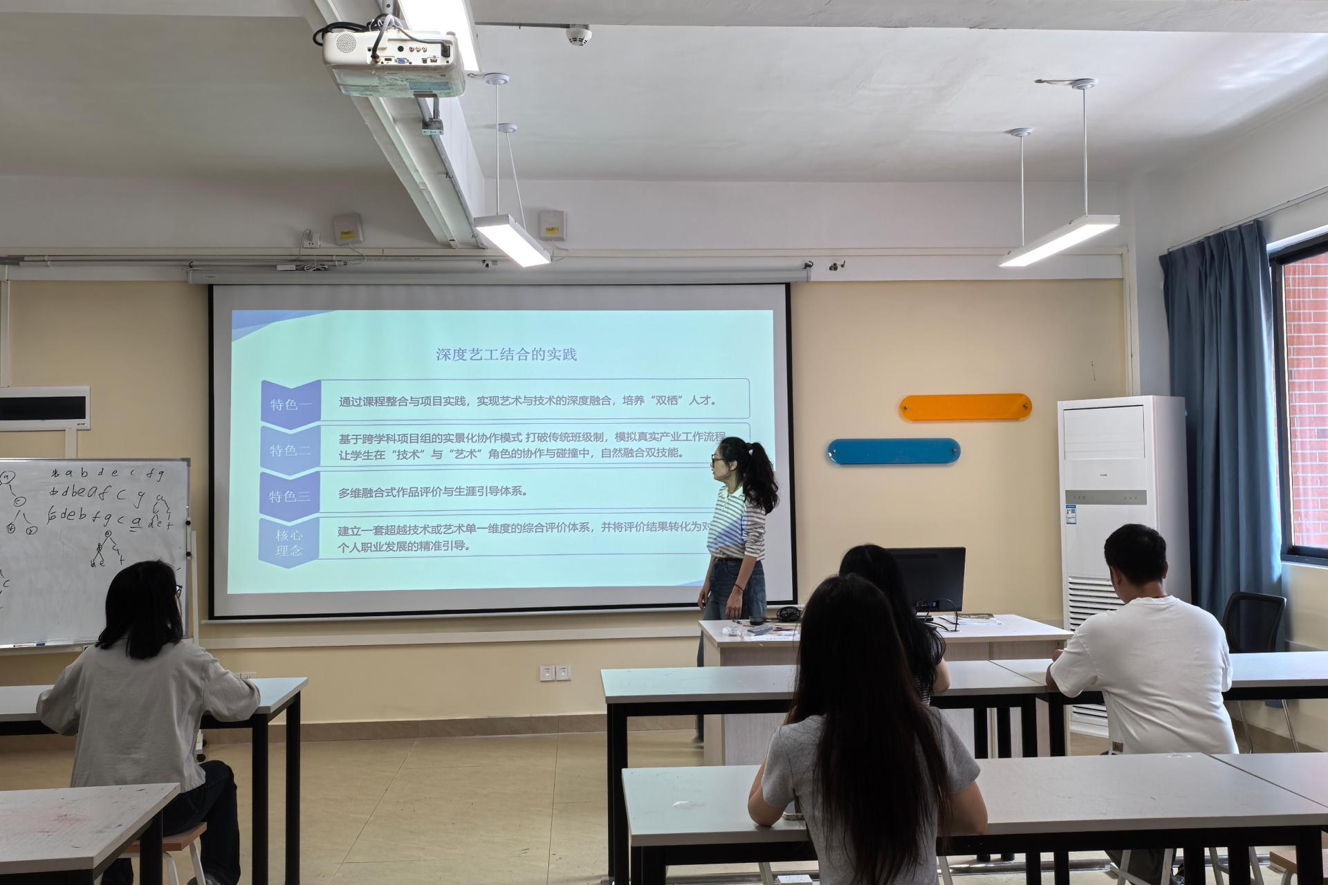 2025年9月26日,虚拟现实技术专业教研室在守正楼G311教室召开“六说”系列活动之“教研室主任说‘专业’”专题会议,教研室全体教师参会,会议主要是围绕专业建设,系统梳理发展思路。会上,教研室主任韩笑老师在学科设置背景与发展规划方面指出,专业以多学科交叉为背景,结合学校工科背景,加强“艺、工”合作,助力新工科的发展为特色,强化专业创新与创意能力,实现数字技术在文化传承中的有效运用,推动创新思维在数字娱...