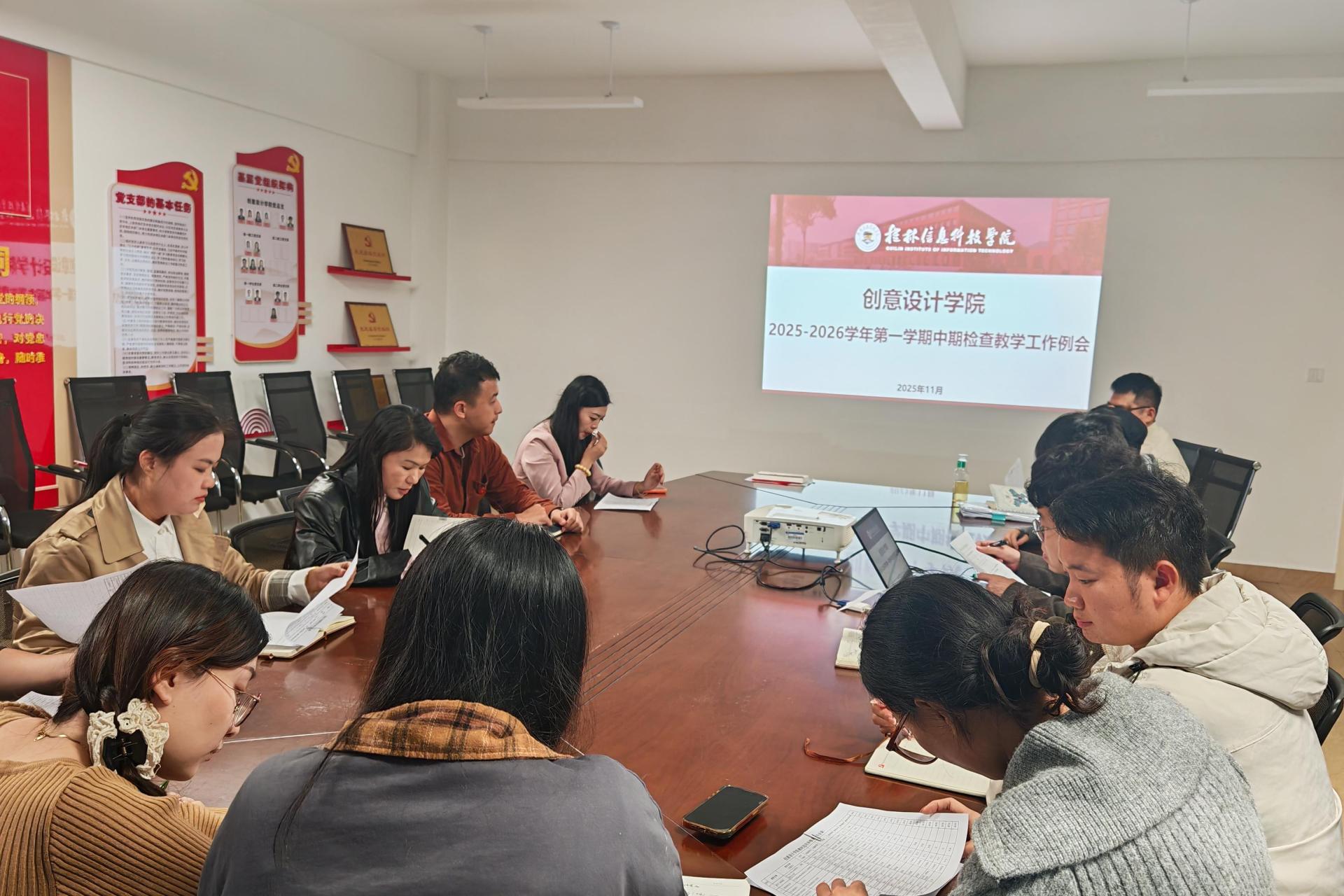 11月5日,创意设计学院在守正楼G517会议室召开教学工作例会。会议由李辉副院长主持,学院领导班子出席,各专业教研室主任、副主任参与会议。会上,李辉副院长首先传达了学校第九次工作例会精神,强调近期教务处及教学质量监控中心关于教学方面的工作要求,保证下学期任课教师、外聘教师以及教材计划等工作安排,以便教学秩序有条不紊地开展。此外,李辉副院长还就考试、2026届毕业设计和教学质量突出问题进行部署安排。会议最后...