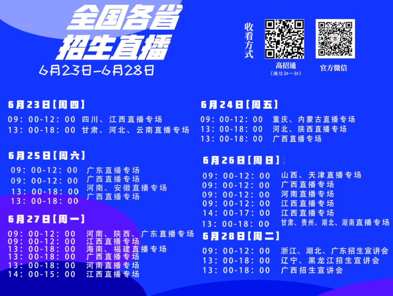 2.全国各省招生直播(6月23日-28日 具体时间详见上图)