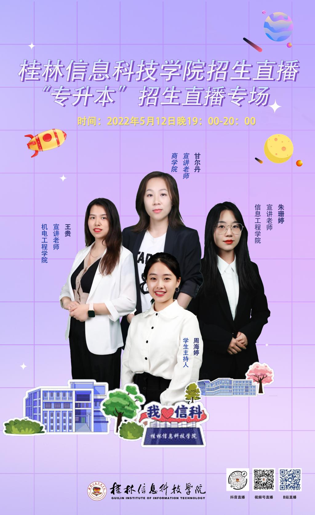 为了让区内广大高职院校的同学进一步了解beat365官网基本情况、校园生活文化、专业设置和“专升本”人才培养方案,beat365官网定于5月12日进行“专升本”招生线上专业介绍直播,对接柳州职业技术学院及其他高职院校的同学。具体通知如下: