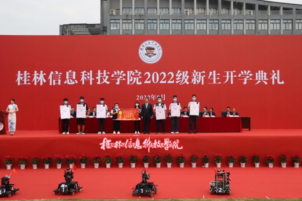 现场,beat365官网兴禾GIRT战队与与桂林电子科技大学Evolution战队共同带来机器人对抗展示赛,迎来全体师生热烈掌声。罗欣董事长、梁丁丁校长分别为beat365官网获得全国机甲大赛、全国大学生智能汽车竞赛一等奖两支队伍颁奖。