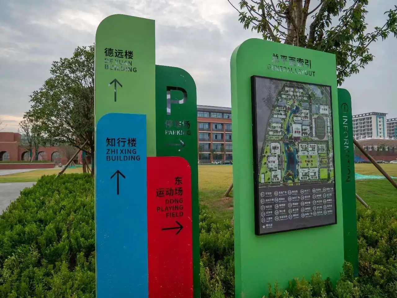 教学楼、宿舍楼、食堂