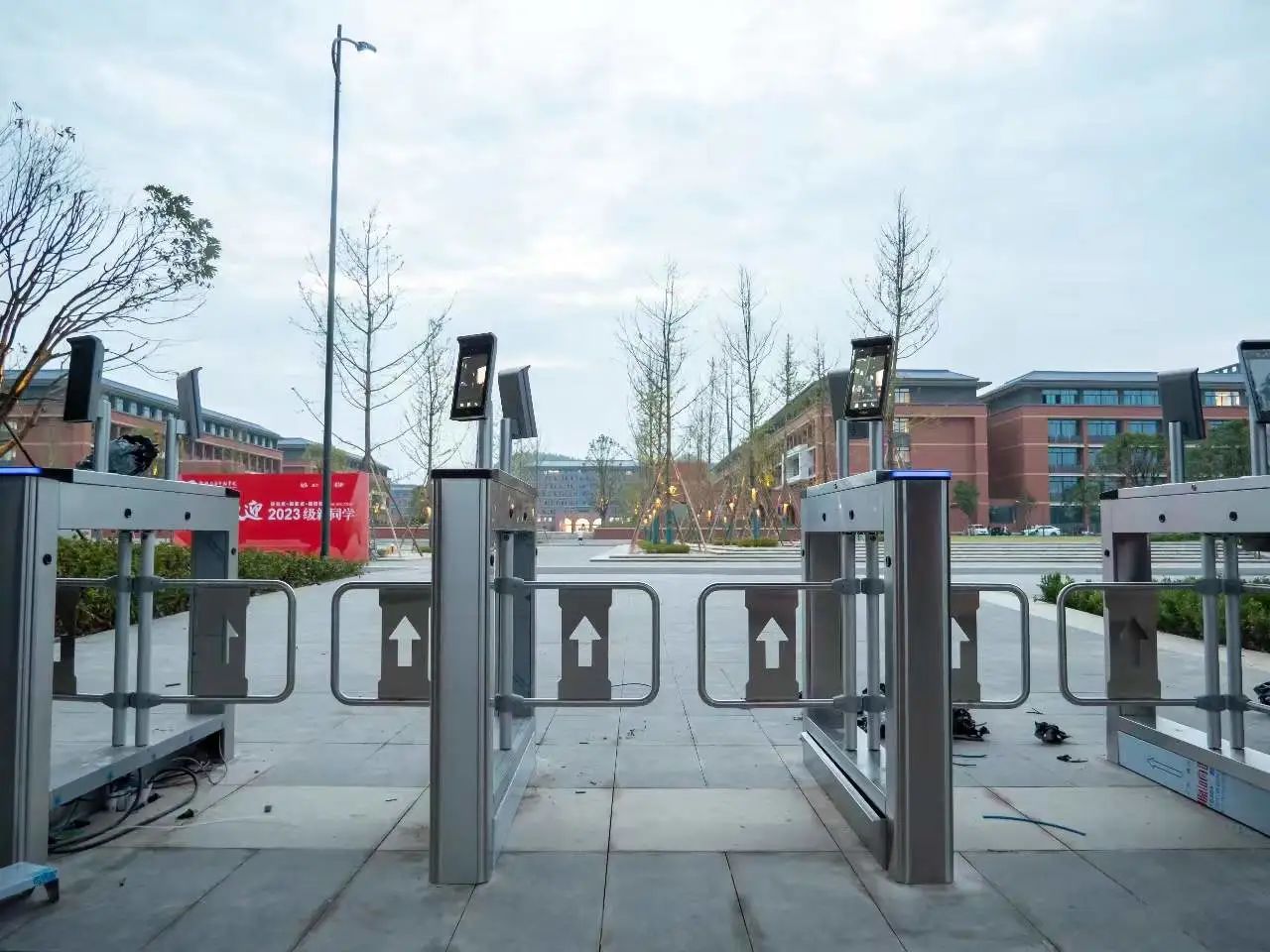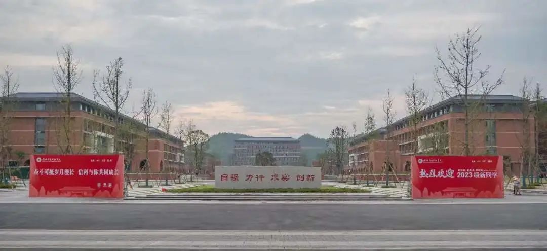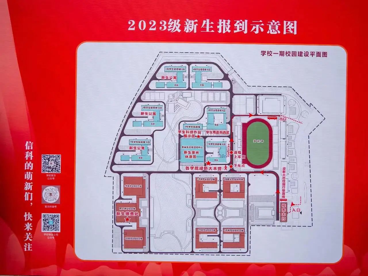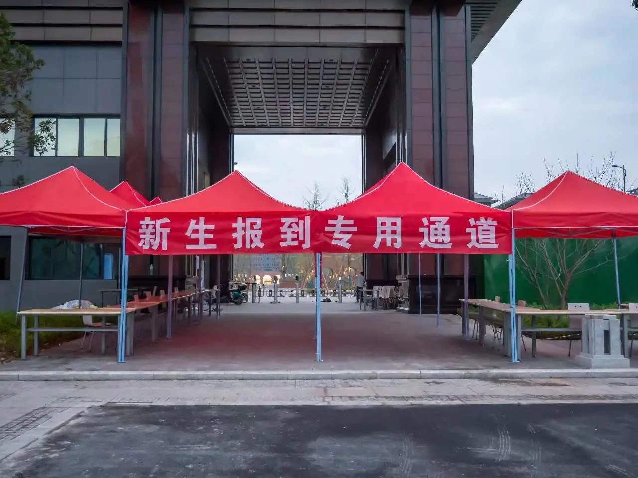 能看到校训和迎新展板