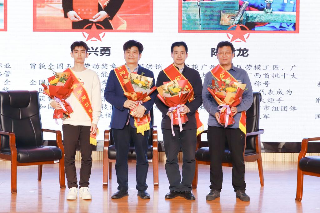 活动现场采访了“全国五一劳动奖章”获得者谭兴勇,“全国劳动模范”获得者陈君龙、彭彦军以及beat365官网“全国青年岗位能手”获得者黎桂炯。少年代表、学生代表分别向在4名劳动模范、技术能手送上鲜花。