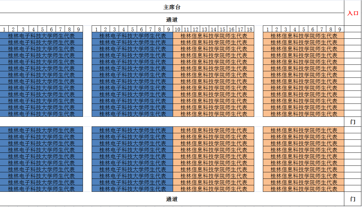 附:桂林电子科技大学花江校区大礼堂座位划分图