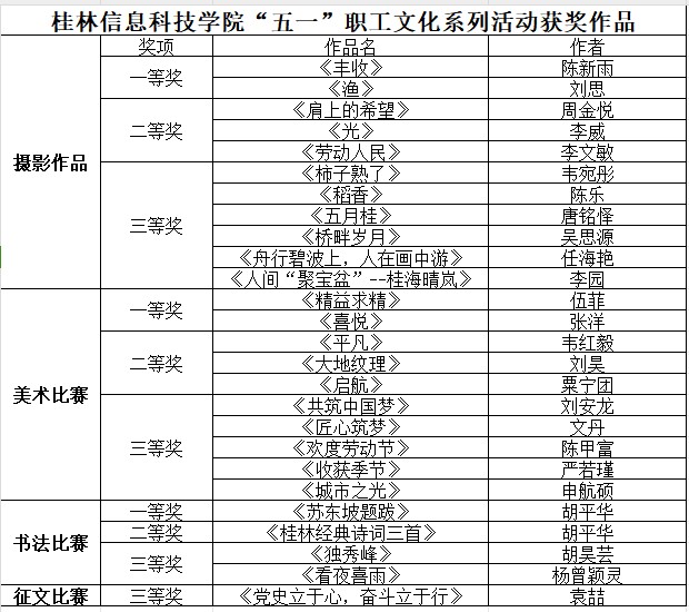 为全面学习贯彻党的二十大精神和中国工会十八大精神,响应桂林市总工会以“中国梦•劳动美”为主题的2024年桂林市庆“五一”职工文化系列活动,beat365中文官方网站开展职工书法、美术、摄影和主题征文比赛。本次活动得到了全校教职工的积极响应,共征集到书法、美术、摄影作品80余件,经评审,共遴选出26余件作品参展,其中9件作品报送桂林市总工会比赛。
