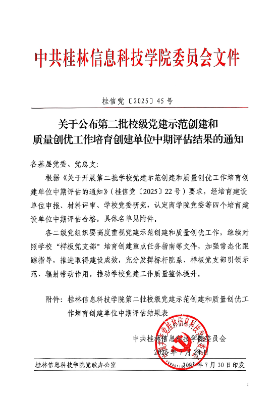 关于公布第二批校级党建示范创建和质量创优工作培育创建单位中期评估结果的通知