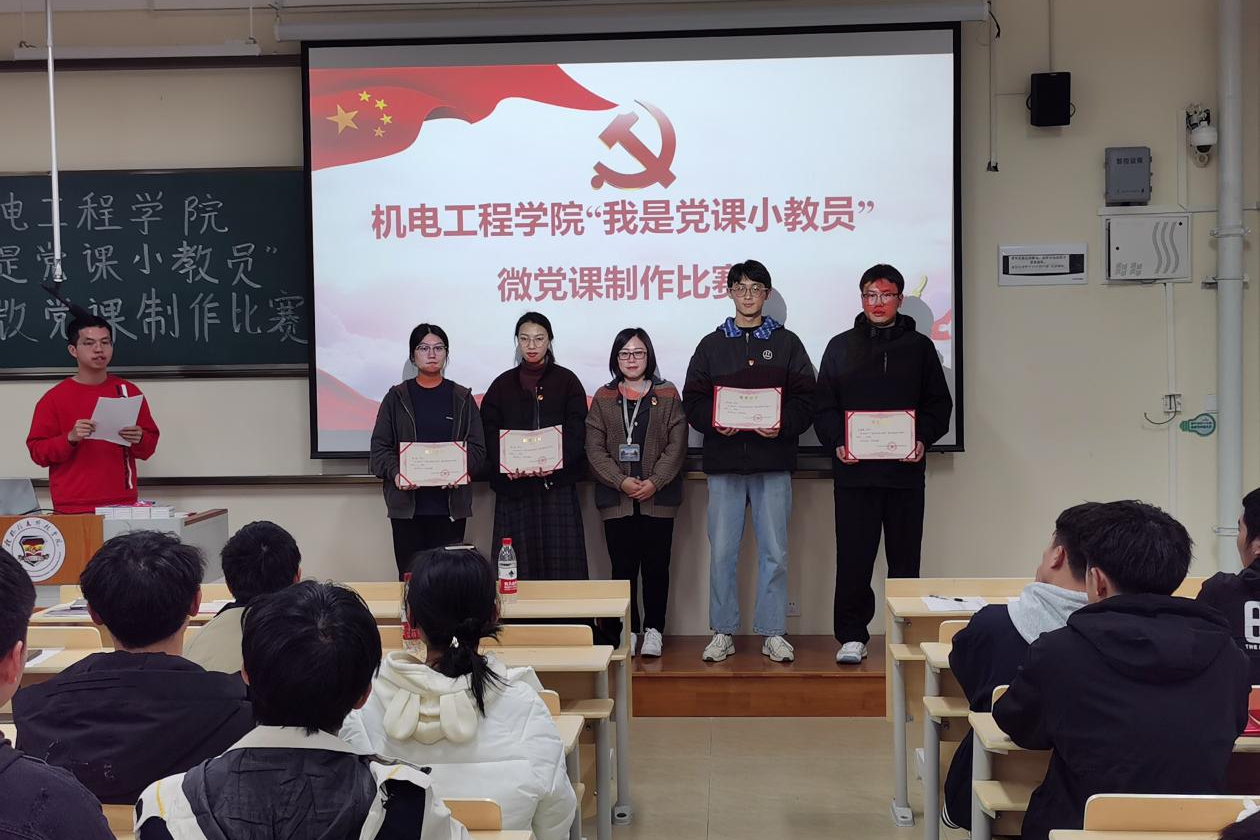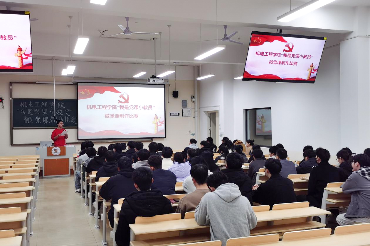 为深入学习贯彻习近平新时代中国特色社会主义思想,以赛促学、以赛促练、以赛促讲,进一步提升党员教育实效,1月2日,机电工程学院在D210开展“我是党课小教员”微党课制作比赛。
