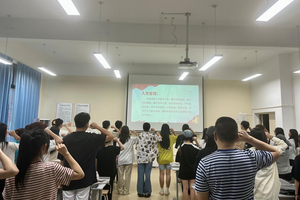 活动伊始,由党支部书记宣读上半年过“政治生日”党员名单,送上生日礼物和祝福,唤醒入党初心,进一步激发党员同志们的先锋模范作用。随后,党支部书记带领全体党员重温入党誓词。全体党员面向党旗高举右拳庄严肃立,铿锵有力地重温入党誓词,重忆入党初心,再受党性洗礼。誓言铿锵,豪迈的声音震撼着在场的每一位党员,丹心闪耀,彰显了对党忠诚、为共产主义事业奋斗终身的决心。
