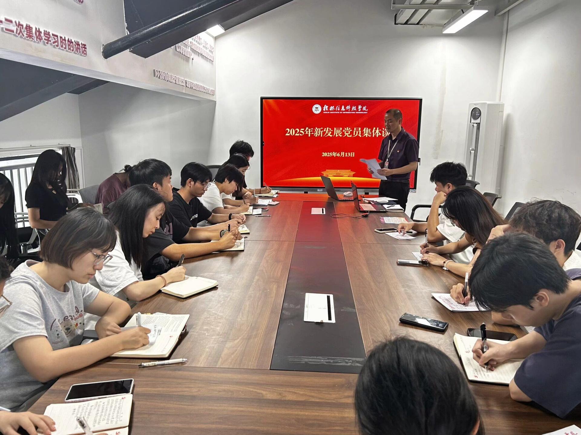 为深入学习贯彻习近平新时代中国特色社会主义思想,全面贯彻党的二十届三中全会精神,切实加强新党员对党忠诚教育,把好发展党员的“入口关”和“质量关”。6月13日-16日,学校党委组织开展2025年上半年新发展预备党员集体谈话,谈话由党委委员、党群事务部部长张文源主持。