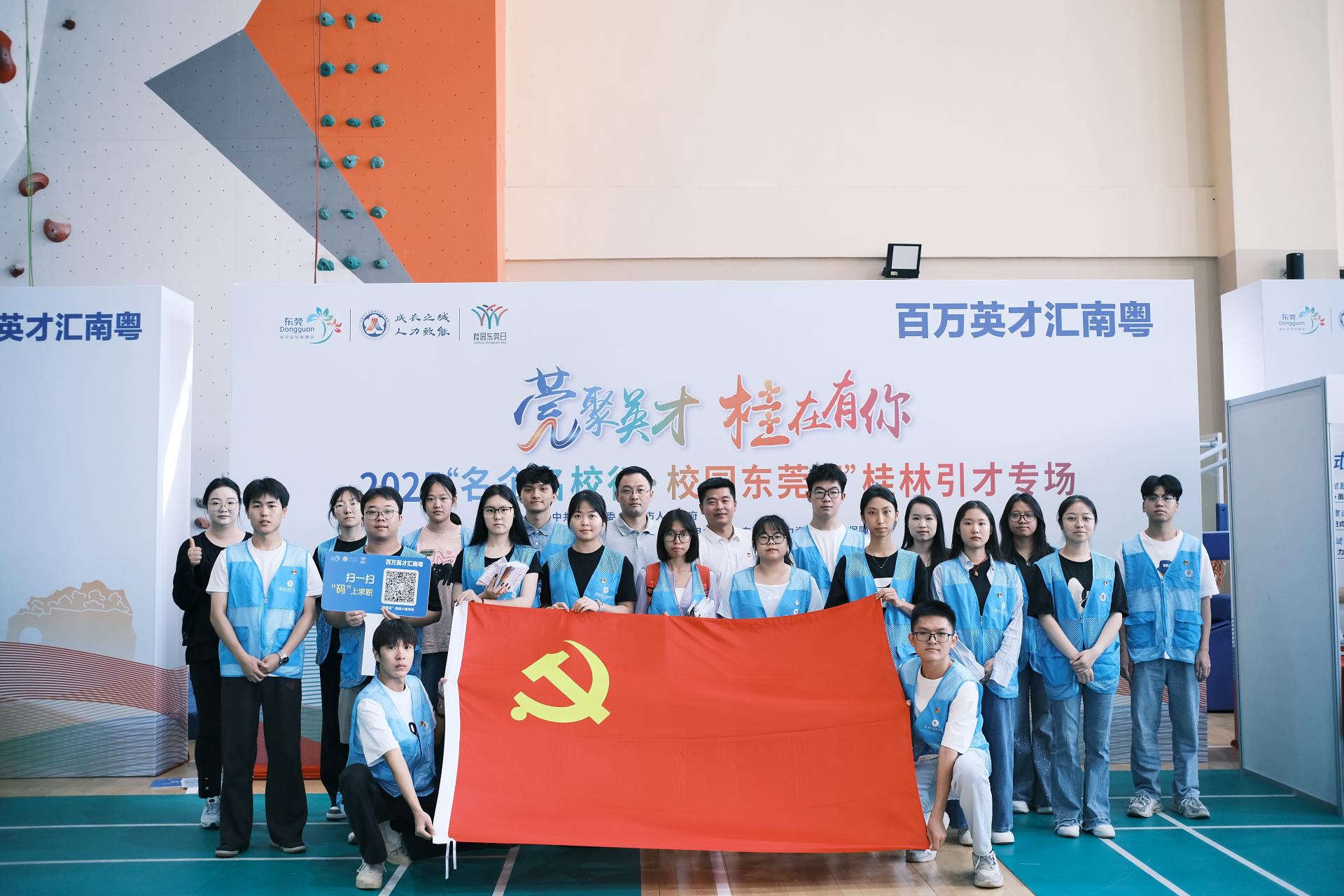 为助力毕业生高质量就业,精准对接校企人才需求,9月27日上午,商学院党委组织党员志愿者服务2025“名企名校行,校园东莞日”桂林引才专场校园招聘会。